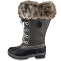 Brave the cold in style with the LONDON FOG Women's Melton Cold Weather Waterproof Snow Boots (Size 11, New With Tags). Designed in black and grey faux leather, these boots feature a waterproof exterior, fur-trimmed topline, and warm insulated lining for ultimate winter comfort. The 8.25-inch shaft height, 13-inch circumference, and 1-inch heel provide full coverage and a comfortable fit. Finished with a vegan leather sole, these boots combine durability with timeless sophistication—perfect for snow, rain, and everyday wear.