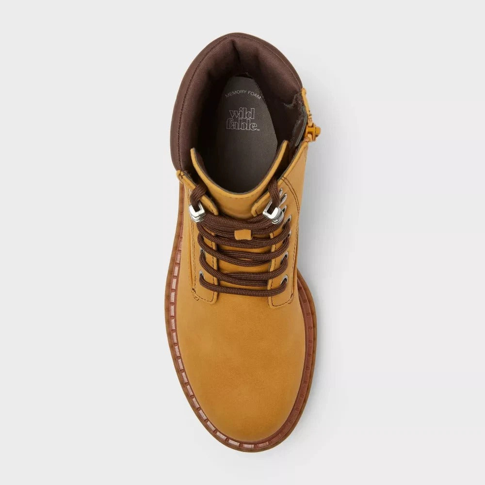 Keywords: Wild Fable hiker boots 7.5, tan ankle boots women, memory-foam hiking boots, lace-up tan hiker style, women’s block-heel outdoor boots.